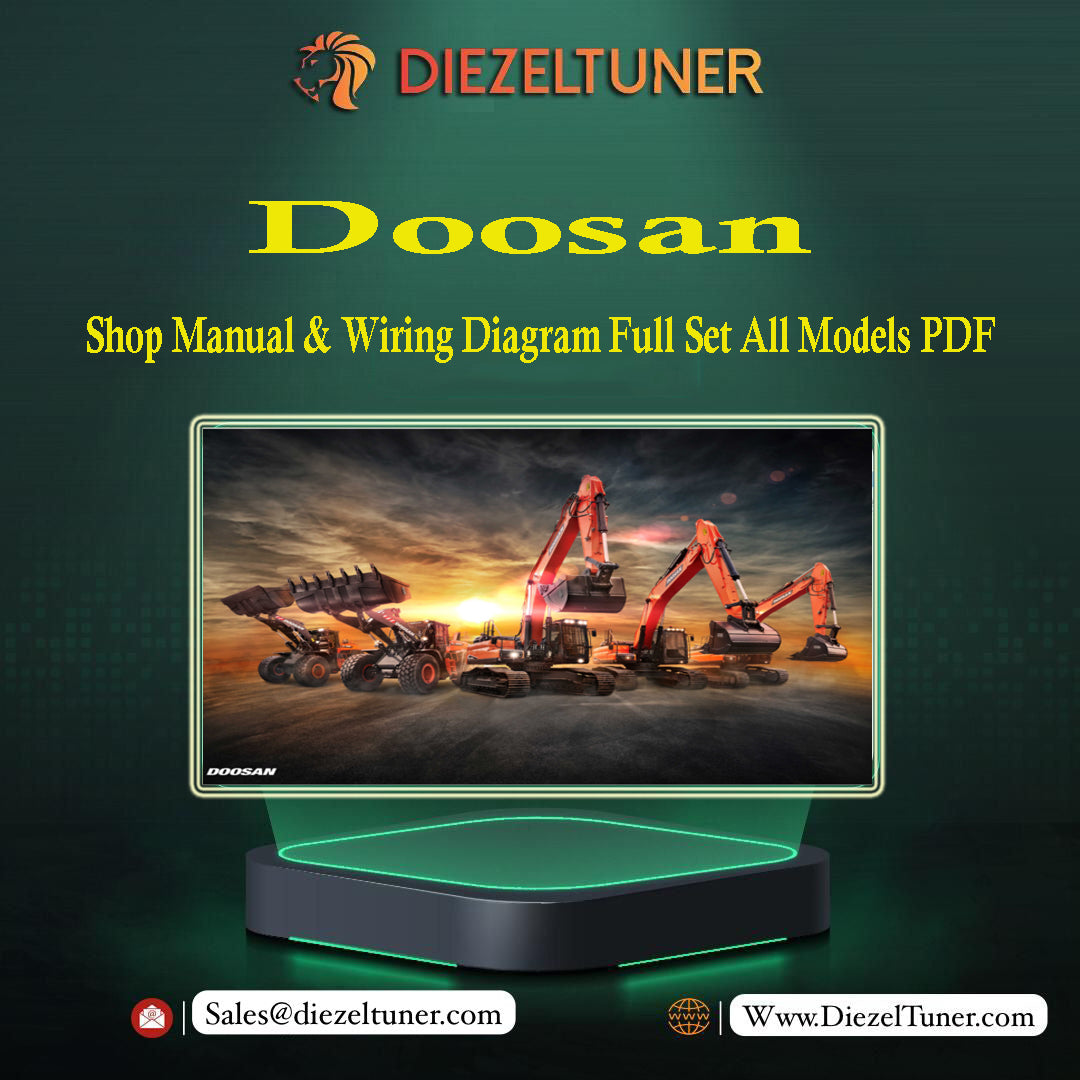 Complete shop manual and wiring diagram collection for all Doosan equipment models. Comprehensive PDF set with detailed repair procedures, maintenance schedules, and electrical diagrams.